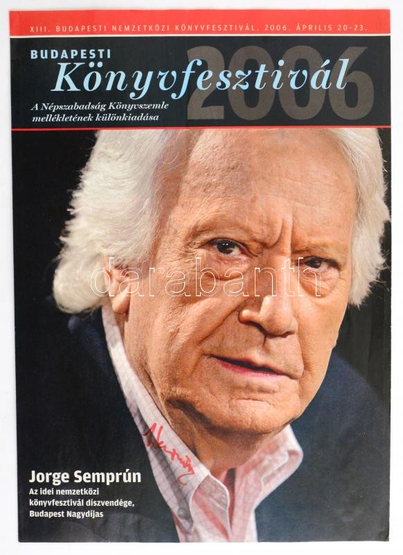 Leírás: Jorge Semprun író aláírása könyvfesztiváli kiadványon / Autogrpah signature
