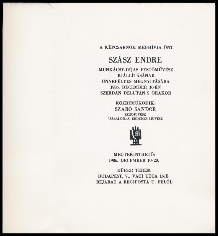 Leírás: Szász Endre dedikált kiállítási katalógus