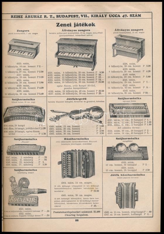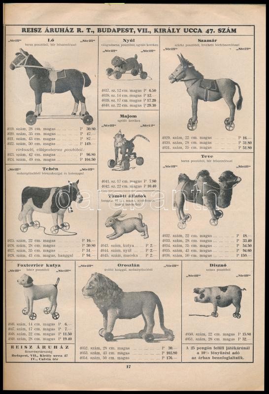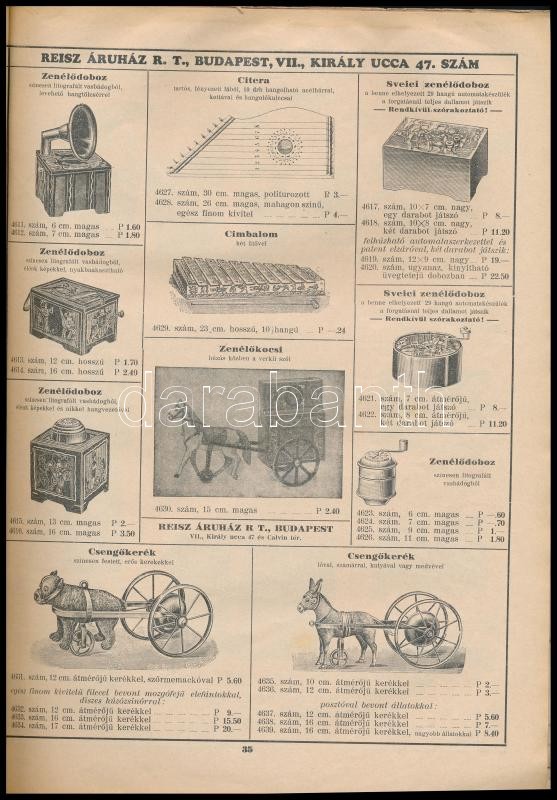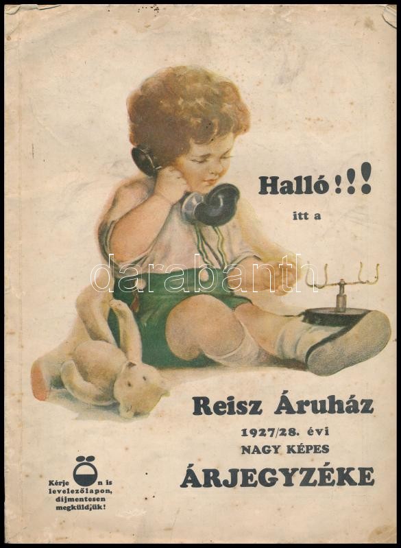 1927 Reisz Áruház 1927/28. évi nagy képes árjegyzéke. Összeáll.: Vermes József. Bp., Papír (Schlesinger Jenő)-ny., 93+1 p. Gazdag szövegközti képanyaggal. Papírkötésben, foltos, kissé szakadozott borítóval.