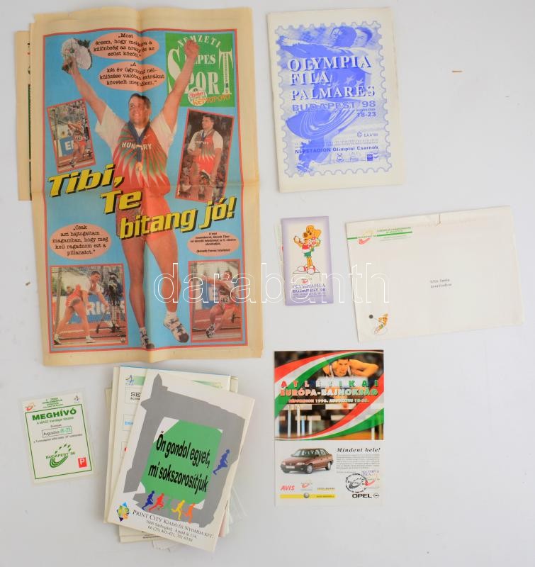 Leírás: 1998 Európai Atlétikai Bajnokság tétel: levélzárok EB borítékok, programfüzetek, meghívók