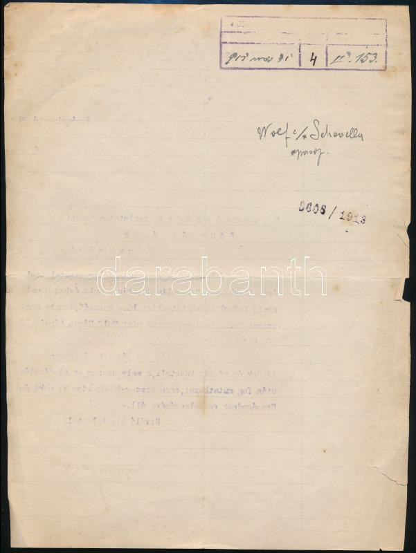 Leírás: 1913 Magyar és Lang Első pozsonyi kályha- és agyagáru gyár fejléces levélpapírra írt levél