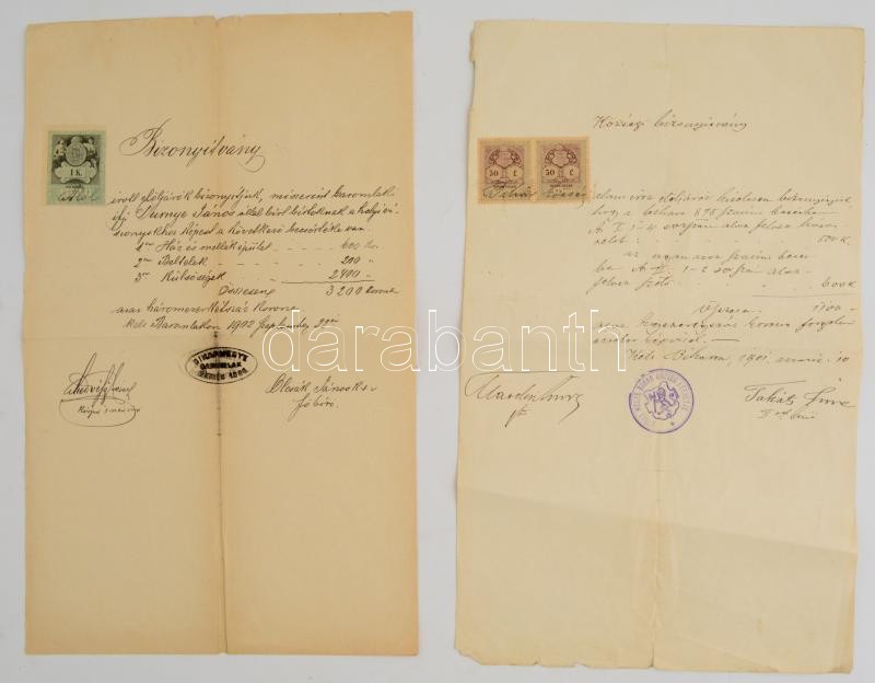Leírás: cca 1880 2db okmány Bihar és Baromlak bélyegzésekkel