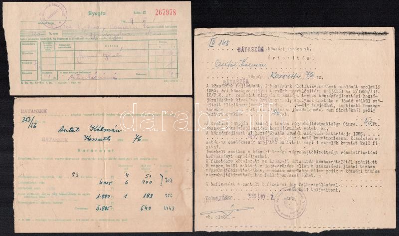 Leírás: cca 1955-1970 7 db vegyes bátaszéki okmány