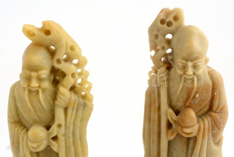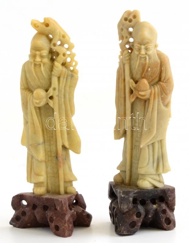 Leírás: Kínai zsírkő figura pár, apró kopásnyomokkal, h: 17 cm