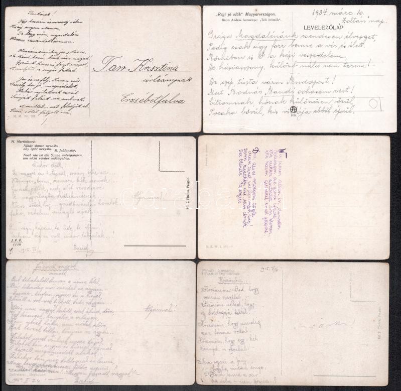 Leírás: cca 1910-1930 11 db képeslap, rajtuk versekkel