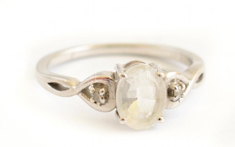 Leírás: Ezüst (Ag) gyűrű fehér kővel, Jelzett. 2,26 g, m:56