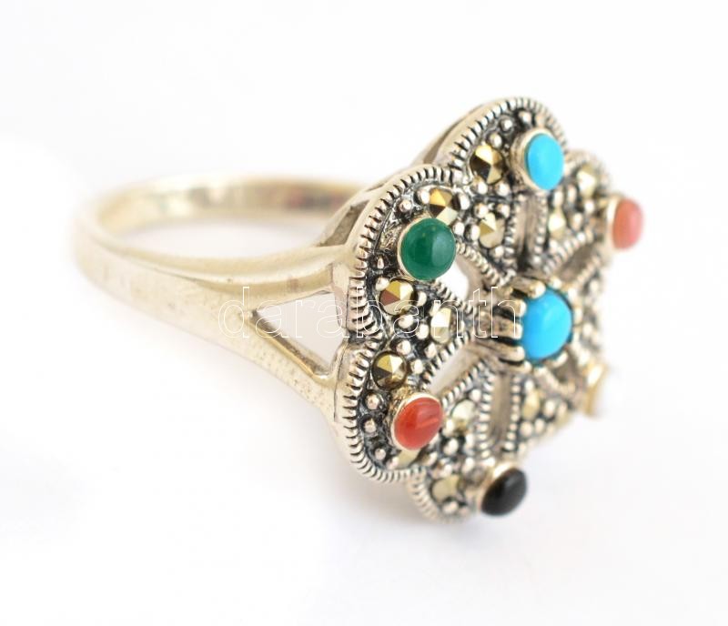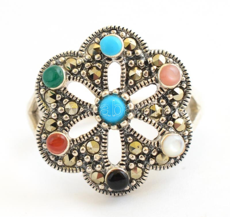 Leírás: Ezüst (Ag) virágos gyűrű, jelzett, méret: 61, bruttó: 7,54 g