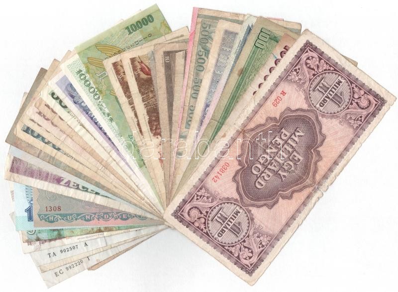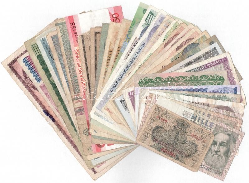 32db-os vegyes, főleg külföldi bankjegytétel, közte Ausztria, Olaszország, Fülöp-szigetek, Csehszlovákia, Malajzia, Etiópia T:vegyes 32pcs mixed foreign banknote lot, within Austria, Italy, Philippines, Czechoslovakia, Malaysia, Ethiopia C:mixed