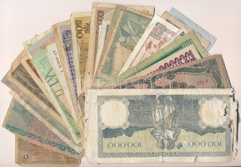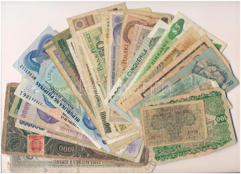32db-os vegyes, főleg külföldi bankjegytétel, közte Ausztria, Olaszország, Thaiföld, Csehszlovákia, Zimbabwe, Argentína T:vegyes 32pcs mixed foreign banknote lot, within Austria, Italy, Cambodia, Czechoslovakia, Zimbabwe, Argentina C:mixed