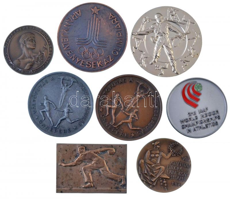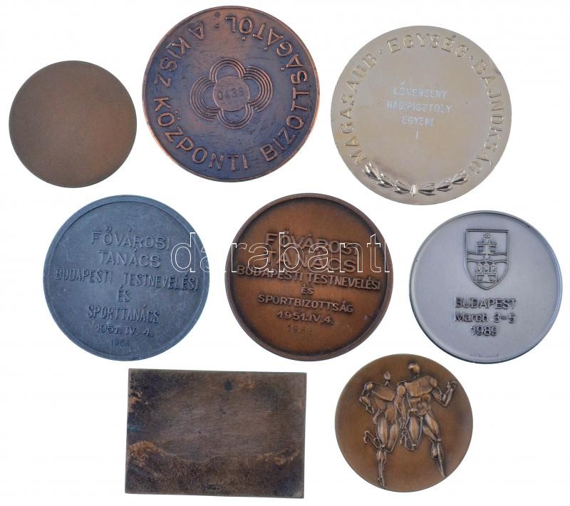 9db vegyes sportérem, ~1980. "Aranyjelvényesek az Olimpiára / A KISZ Központi Bizottsága - 0438" Br emlékérem (70mm), Iván István (1905-1968) 1953. "Váltófutás a felszabadulás ünnepére / Fővárosi Tanács Budapesti Testnevelési és Sportbizottság 1951. IV. 4. 1953" Br emlékérem (66mm) T:1-2-