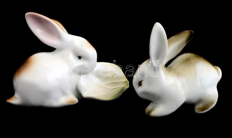 Leírás: Zsolnay nyuszik, Két darab. Kézzel festett, jelzett, hibátlanok m:6,5 cm, 7 cm