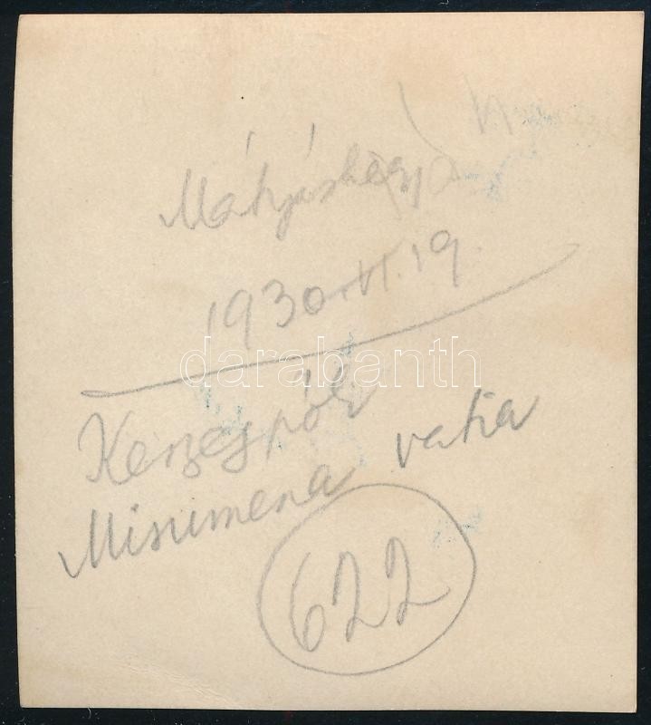 1930 Kinszki Imre (1901-1945) budapesti fotóművész hagyatékából, a szerző által feliratozott vintage fotó (Mátyáshegy, ez a szerző 622. sz. felvétele), 6,4x5,7 cm