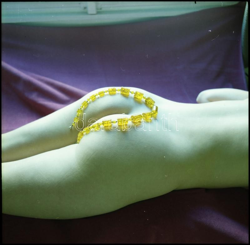 Szerelmi játékok. Eltérő időpontokban, különböző helyszíneken és több fotómodell közreműködésével készült akt felvételek, Menesdorfer Lajos (1941-2005) budapesti fotóművész hagyatékából, 7 db vintage NEGATÍV, 6x6 cm