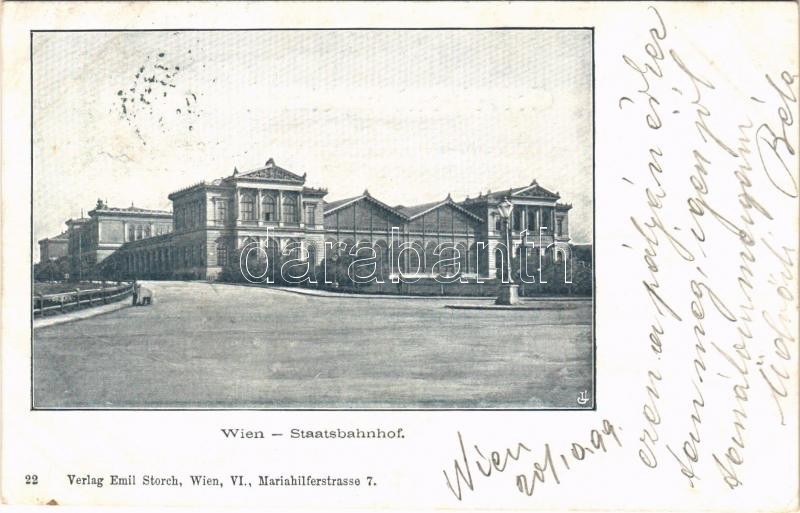 Leírás: 1899 Wien, Vienna, Bécs; Staatsbahnhof / railway station. Verlag Emil Storch (EK)