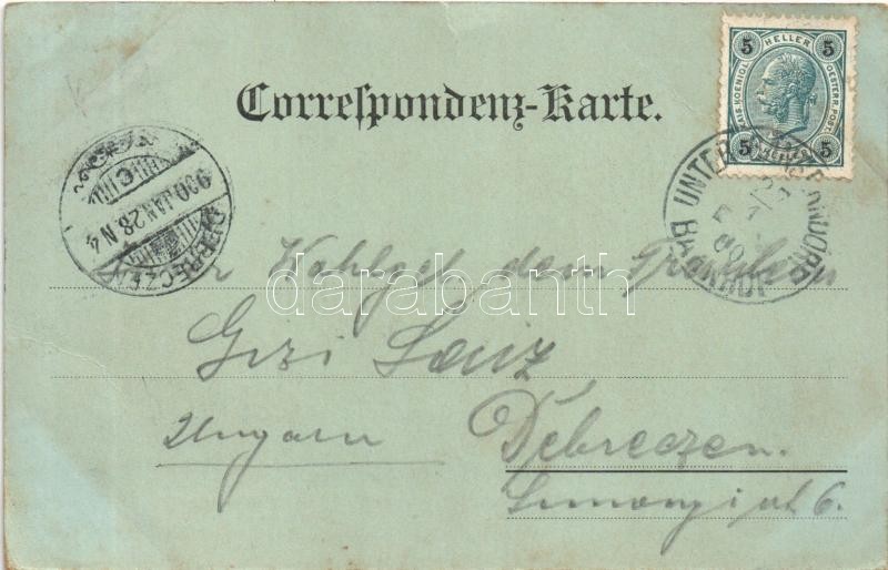 Leírás: 1900 Gänserndorf, Unter Gänserndorf, Bahnhof, Kircheplatz / general view, church, square, railway station. Art Nouveau, floral (tear)