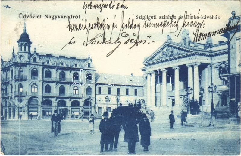 1906 Nagyvárad, Oradea; Szigligeti színház, Emke kávéház / theatre, ca... https://www.darabanth.com/hu/386-Gyorsarveres/386.0/Kepeslapok/Erdely~1500006/1906-Nagyvarad-Oradea-Szigligeti-szinhaz-Emke-kavehaz-theatre-cafe~II2311684