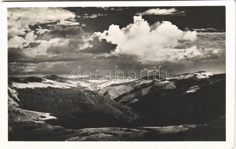 Radnai-havasok, Muntii Rodnei; Kis árnyas völgy. Kővágő Ferenc felvétele. Kiadja a Magyarországi Kárpát Egyesület fennállásának 70. esztendejében / mountains, valley