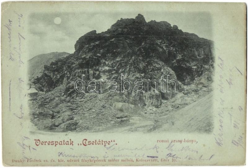 Leírás: Verespatak, Goldbach, Rosia Montana; római aranybánya a Csetátye-hegységben. Dunky Fivérek kiadása / Roman gold mine in the Cetate mountain (EK)