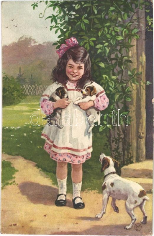 1935 Girl with dog and puppies. Wenau-Delila (EK) https://www.darabanth.com/hu/386-Gyorsarveres/386.0/Kepeslapok/Gyerek~1500083/1935-Girl-with-dog-and-puppies-Wenau-Delila-EK~II2309511