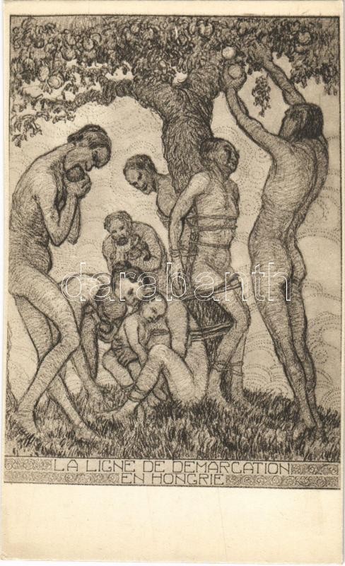 Demarkációs vonal Magyarországon. Némethy Miklós ciklusának II. képe. Kiadja a Tolnay Könyvkiadó, Magyarország Területi Épségének Védelmi Ligája / Hungarian irredenta propaganda. Trianon s: Némethy M.