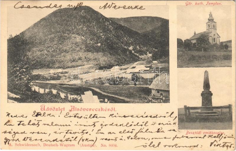1905 Alsóverecke, Niznije Verecki, Nizsnyi Vorota, Nyzhni Vorota; Görö... https://www.darabanth.com/hu/386-Gyorsarveres/386.0/Kepeslapok/Karpatalja~1500008/1905-Alsoverecke-Niznije-Verecki-Nizsnyi-Vorota-Nyzhni-Vorota-Gorog-katolikus-templom-Beszki~II2314265