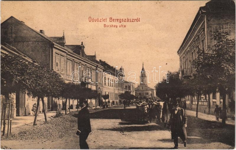 1907 Beregszász, Beregovo, Berehove; Bocskay utca, ökörszekér. Auer K.... https://www.darabanth.com/hu/386-Gyorsarveres/386.0/Kepeslapok/Karpatalja~1500008/1907-Beregszasz-Beregovo-Berehove-Bocskay-utca-okorszeker-Auer-K-es-Kovacs-K-kiadasa-~II2311806