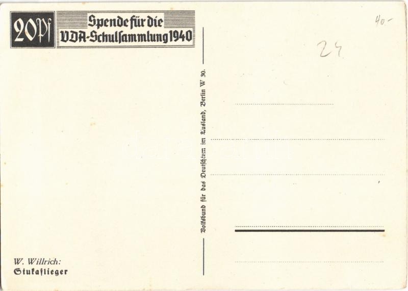 Stukaflieger. Spende für die DDA-Schulsammlung 1940 / WWII Wehrmacht (armed forces of Nazi Germany) art postcard, Luftwaffe Junkers Ju 87 ("Stuka" - Sturzkampfflugzeug) dive bomber pilot s: W. Willrich