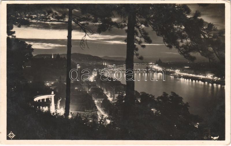Leírás: 1931 Budapest XI. Szent Gellért-hegy, látkép esti kivilágításban (EK)