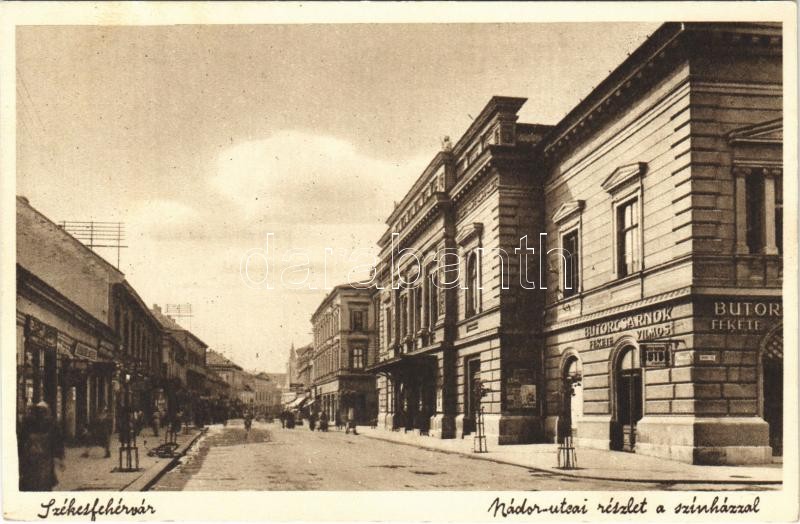 1941 Székesfehérvár, Nádor utca, színház, Fekete Vilmos bútorcsarnoka https://www.darabanth.com/hu/386-Gyorsarveres/386.0/Kepeslapok/Magyarorszag~1500005/1941-Szekesfehervar-Nador-utca-szinhaz-Fekete-Vilmos-butorcsarnoka~II2312913