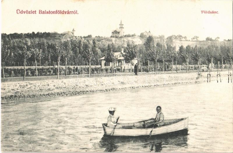 Leírás: Balatonföldvár, Földsánc, csónakázók, nyaralók, villák. Gerendai Gyula kiadása