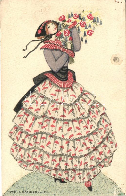 Art Nouveau Lady. B.K.W.I. 3142-1. s: Mela Koehler (EK) https://www.darabanth.com/hu/386-Gyorsarveres/386.0/Kepeslapok/Muveszlapok~1500045/Art-Nouveau-Lady-BKWI-3142-1-s-Mela-Koehler-EK~II1365546