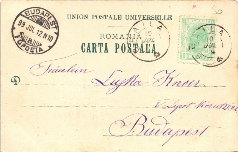 1899 Braila, Inundatia portului 1897. Monument, Strada Regala, Desfacere Totala / flooding of the port in 1897, monument, street view, shop. Max Ekstein Art Nouveau, floral (EK)