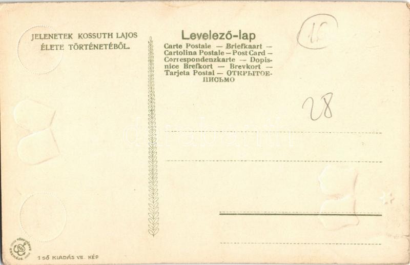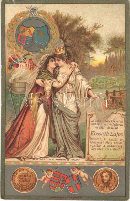 "A gyászoló Hungária és Italia" Kossuth Lajos halála. Jelenetek Kossuth Lajos élete történetéből 1. kiadás VII. kép / The Death of Kossuth. Scenes from the life of Lajos Kossuth. Athenaeum rt. Art Nouveau, Emb. litho s: K. Sávely D. (EK)