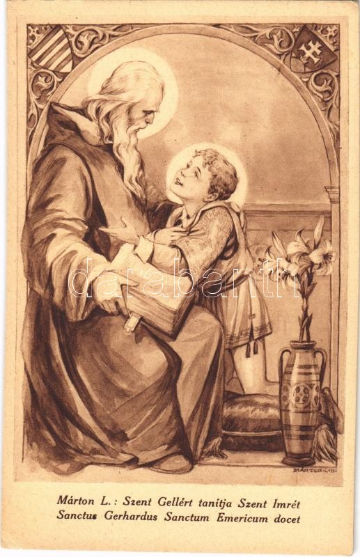 Szent Gellért tanítja Szent Imrét. Készüljetek a Szent Imre Év méltó megünneplésére! 1030-1930 / Saint Gerard with Saint Emeric of Hungary s: Márton L. (EK)