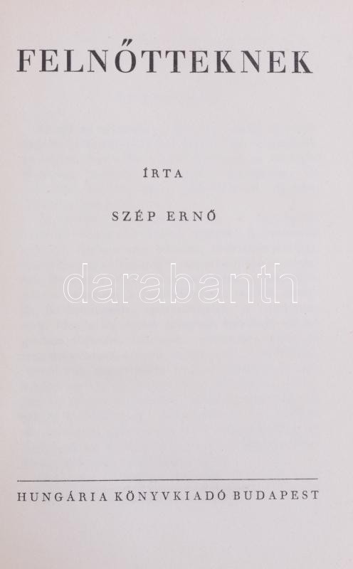 Szép Ernő: Felnőtteknek. Bp.,[1941], Hungária, 297+1 p. Első kiadás. K... https://www.darabanth.com/hu/386-Gyorsarveres/386.0/Konyvek/Konyvek-Egyeb-ritkasagok~1000019/Szep-Erno-Felnotteknek-Bp-1941-Hungaria-297plus1-p-Elso-kiadas-Kiadoi-aranyozott-felbC5~II2308484