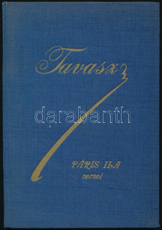 Tavasz - Páris Ila versei. Keszthely, é.n. Szerzői. 1 t + 18p. Kiadói ... https://www.darabanth.com/hu/386-Gyorsarveres/386.0/Konyvek/Konyvek-Egyeb-ritkasagok~1000019/Tavasz-Paris-Ila-versei-Keszthely-en-Szerzoi-1-t-plus-18p-Kiadoi-vaszonkotesben~II2313953