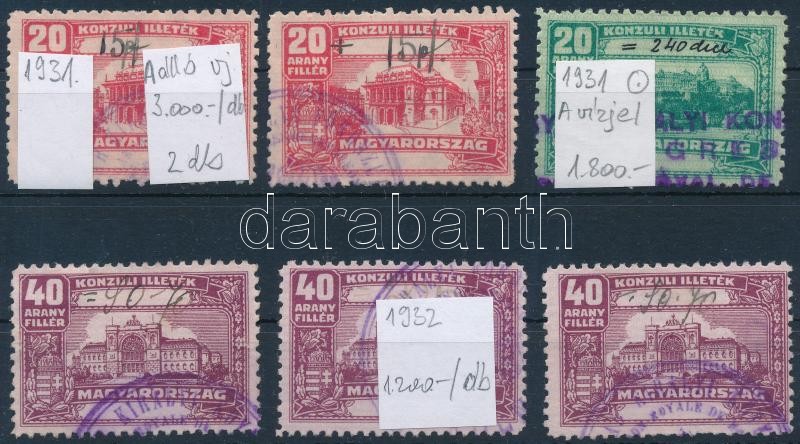 1931-1932 6 db Konzuli illetékbélyeg, pecsételt, jó minőségben (MBÁ 11... https://www.darabanth.com/hu/386-Gyorsarveres/386.0/Magyar-filatelia-es-postatortenet/Okmanybelyegek~500017/1931-1932-6-db-Konzuli-illetekbelyeg-pecsetelt-jo-minosegben-MBA-11400~II2310267