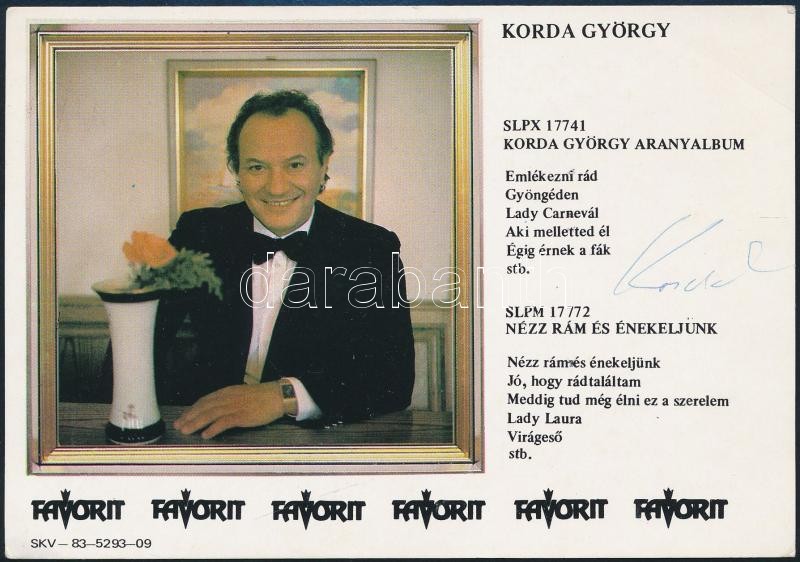 Leírás: Korda György (1939-) énekes aláírása nyomtatott lapon