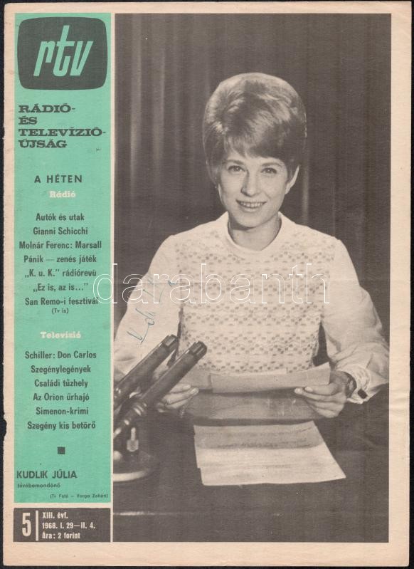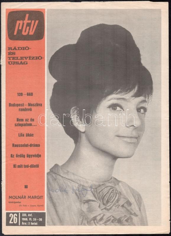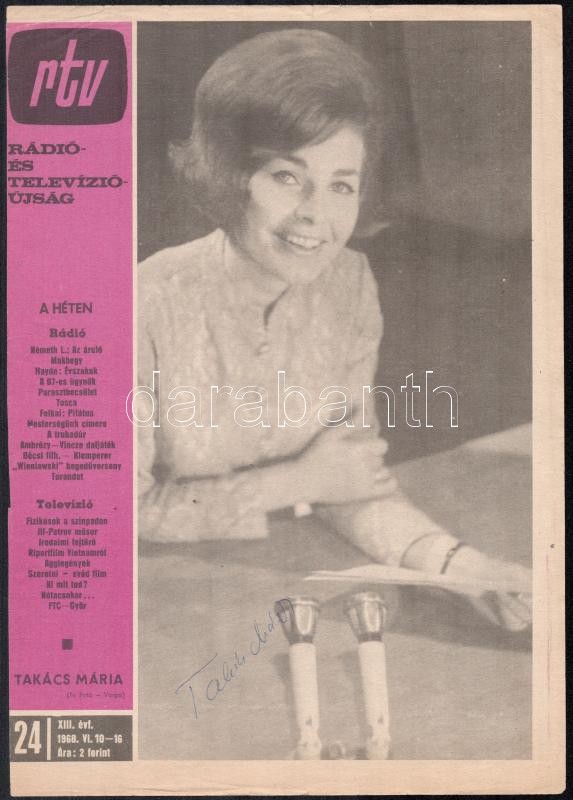 Leírás: Takács Mária, Kudlik Júlia, Molnár Margit, Kincses Veronika bemondók aláírásai az RTV újságon