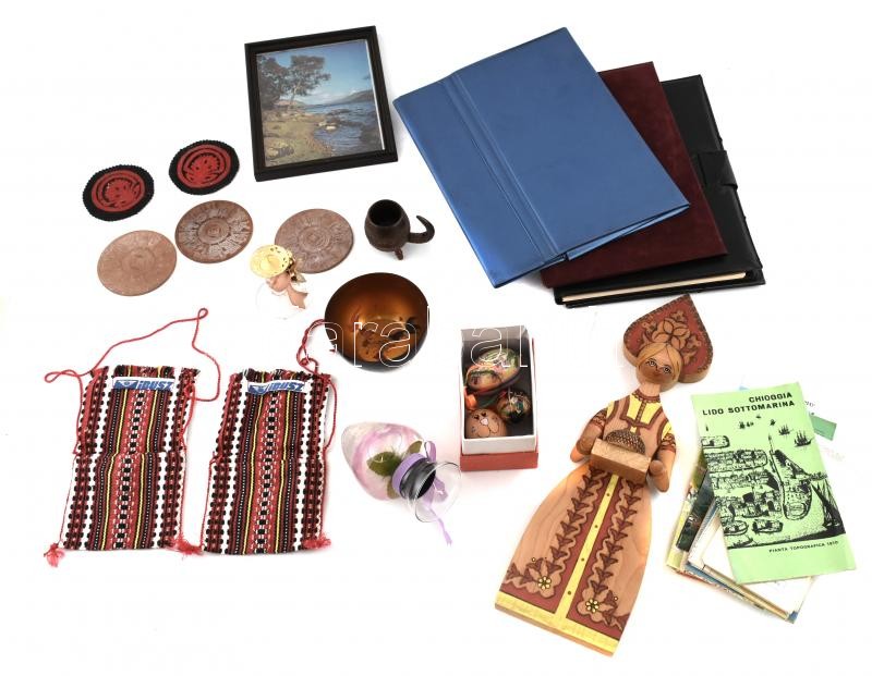 Leírás: Vegyes bolha tétel, fabábuk mappák, modern térképek stb