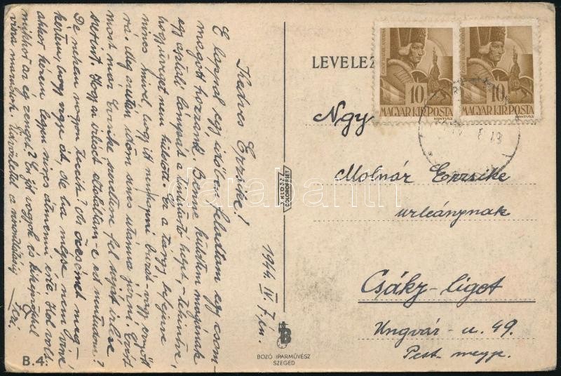 1944 össz.3 db II. világháború militária lap: 2 db tábori posta, m. kir. kárpátaljai 1. honvéd hegyidandár őrmesterétől, egyik Pestszentlőrincre küldve + 1 db Bozó Gyula képeslap