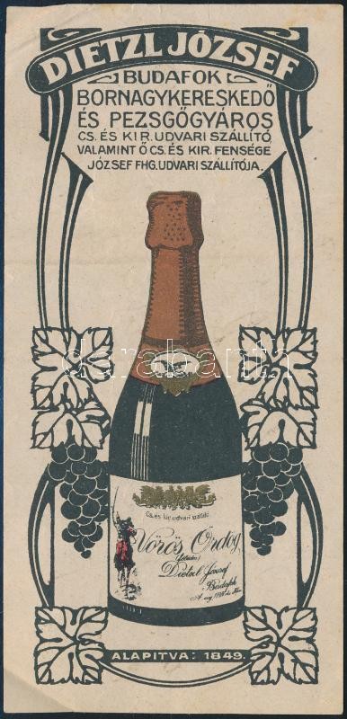 Dietzl József Bornagykereskedő és Pezsgőgyáros Budafok szecessziós szá... https://www.darabanth.com/hu/386-Gyorsarveres/386.0/Mutargy-papirregiseg-egyeb/Reklam~500022/Dietzl-Jozsef-Bornagykereskedo-es-Pezsgogyaros-Budafok-szecesszios-szamolocedula-gyurodC3~II2309555