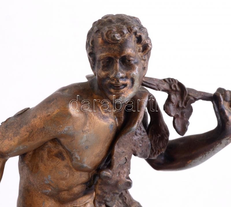 Leírás: Vadász. Bronzírozott spiáter, fa talapzaton. Tlapzaton repedéssel 37,5 cm