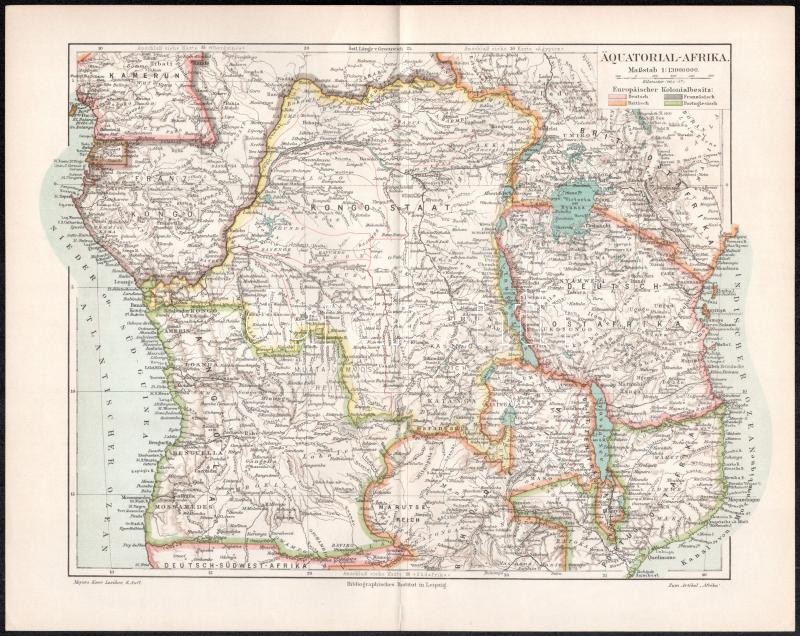 3 db Afrika térkép a Meyers lexikonból 30x25 cm