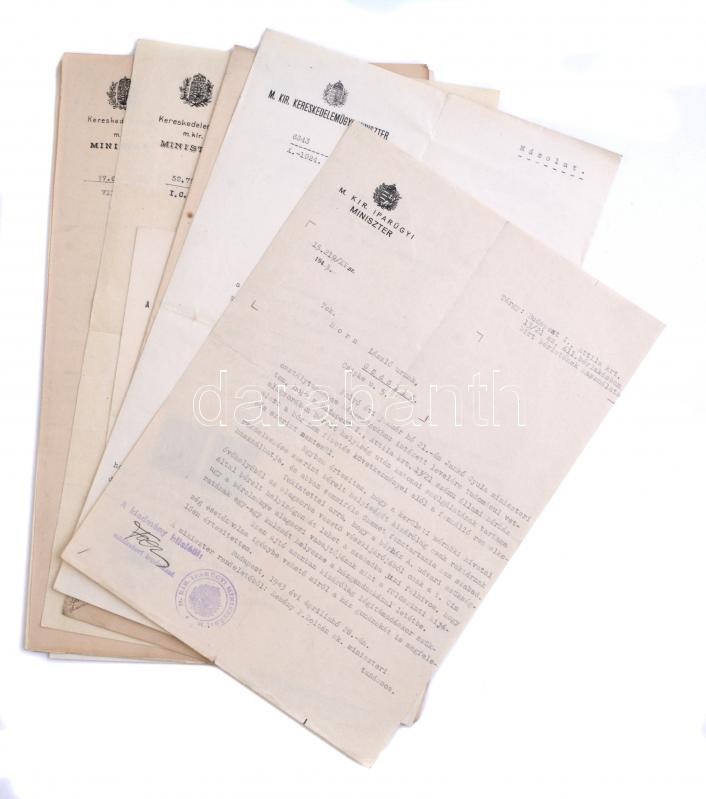 Leírás: 1904-1943 12 db minisztériumi irat
