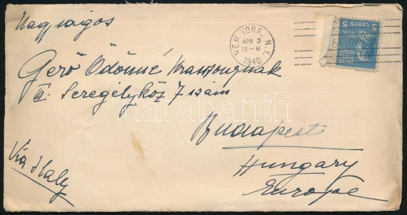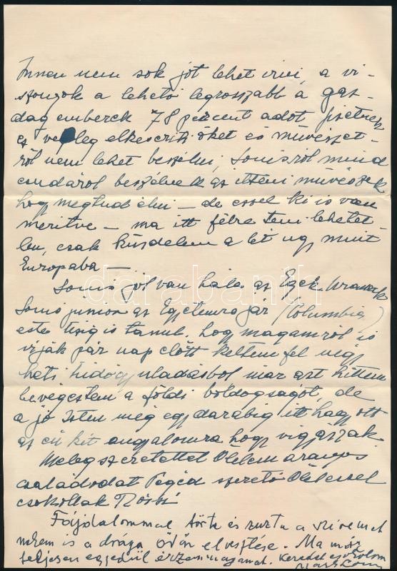 1940.III.3 Márk Lajos (1867-1942) festőművész kondoleáló levele New York Cityből Gerő Ödönné, Gerő Ödön (1863-1939) műkritikus özvegyének, amelyben saját megélhetési nehézségeiről is ír. Két kézzel írt oldal, Márk Lajos autográf aláírásával, eredeti borítékban.