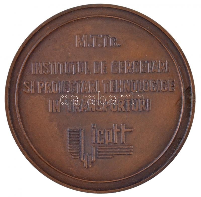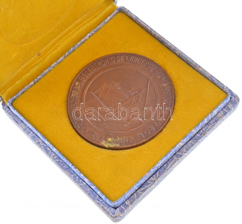 Románia 1976. "Közlekedési Kutatási és Technológiai Tervező Intézet / Az elektronikus sínáramkörök megvalósítása" Br emlékérem dísztokban (60mm) T:1- ragasztónyom