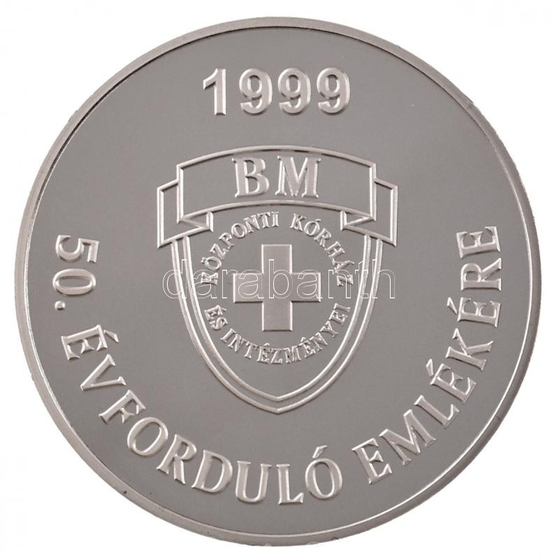 1999. "BM Központi Kórház és Intézményei - 50. évforduló emlékére... https://www.darabanth.com/hu/386-Gyorsarveres/386.0/Numizmatika/Magyar-emlekveretek-plakettek~2000009/1999-BM-Kozponti-Korhaz-es-Intezmenyei-50-evfordulo-emlekere-ezustozott-fem-emlC3~II2309447