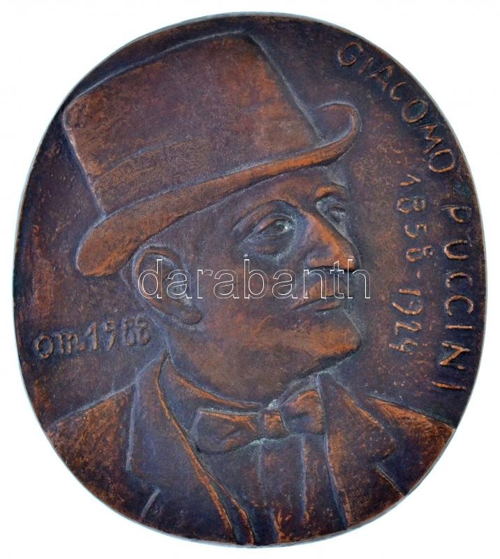 Leírás: Osváth Mária (1921-1998) 1988. "Giacomo Puccini 1858-1924" egyoldalas, öntött Br plakett (117x104mm) T:1-