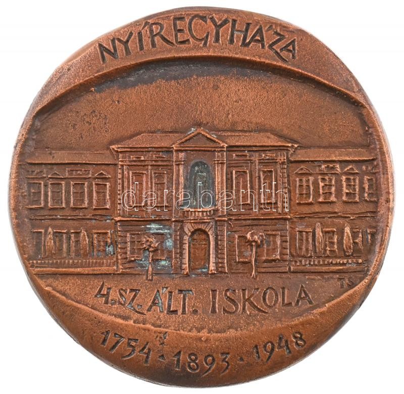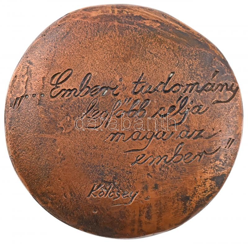 Tóth Sándor (1933-) DN "Nyíregyháza 4. sz. Ált. Iskola - 1754 1893 1948 / ...EMBERI TUDOMÁNY LEGFŐBB CÉLJA MAGA AZ EMBER - KÖLCSEY" kétoldalas, öntött Br plakett (100mm) T:1- kis patina